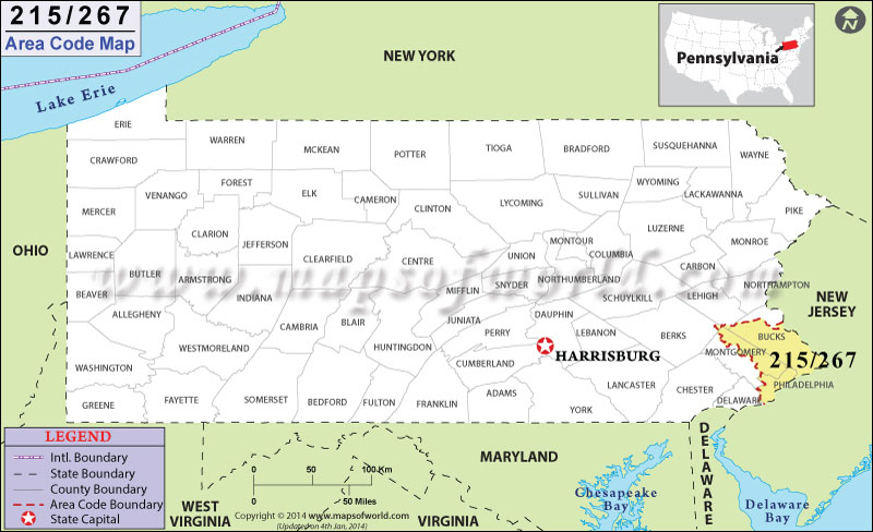 - Philadelphia County: Full coverage. Every neighborhood in the city of Philadelphia is in 267 (or 215/445). The entire city uses these codes.